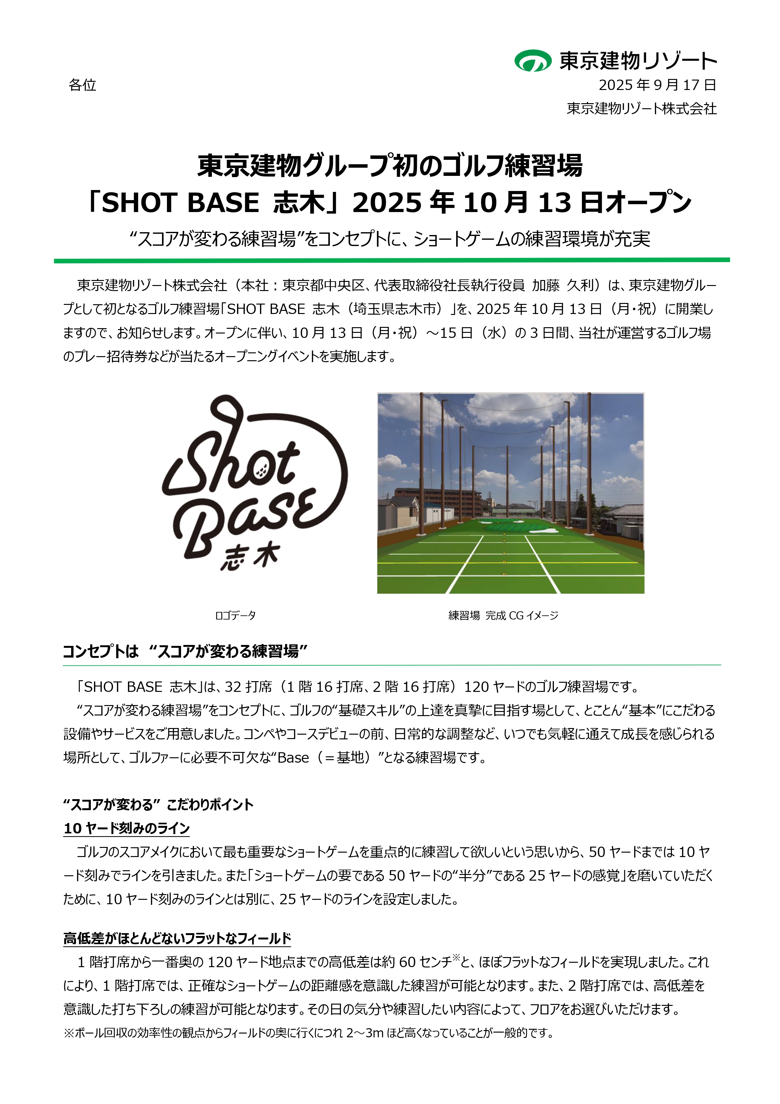 東京建物グループ初のゴルフ練習場「SHOT BASE 志木」2025年10月13日オープン